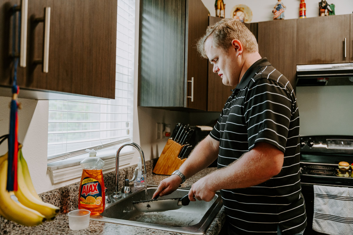 Activities of daily living form the foundation of a stable, familiar home environment. Homes are well-kept and thoughtfully organized to support essential self–care routines. Staff provide support in ways that respect each resident’s abilities and preferences, helping them participate as fully as possible in their own daily regimen. Fresh meals are prepared each day, and residents are offered choices about what they’d like to eat. Mealtimes are often family–style around the dinner table, creating natural moments of connection and conversation for those who choose to participate.