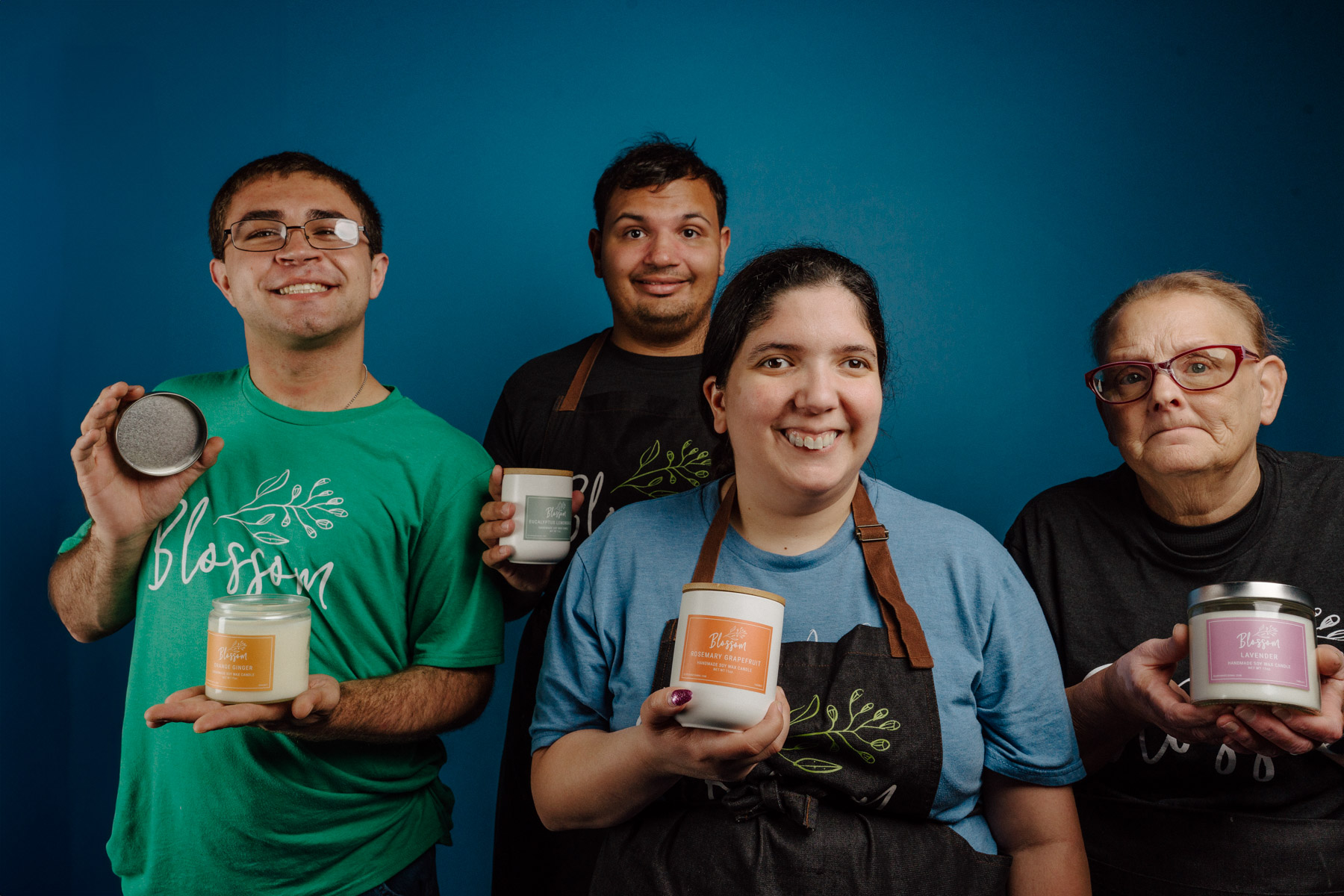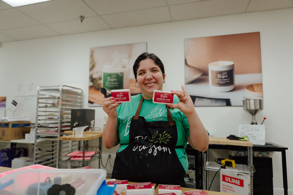 “Working at Blossom makes me feel happy,” Leidalyd says. “I enjoy making soaps and candles, and I love working with my manager, Crystal. Blossom helps me feel independent and earn a paycheck.”