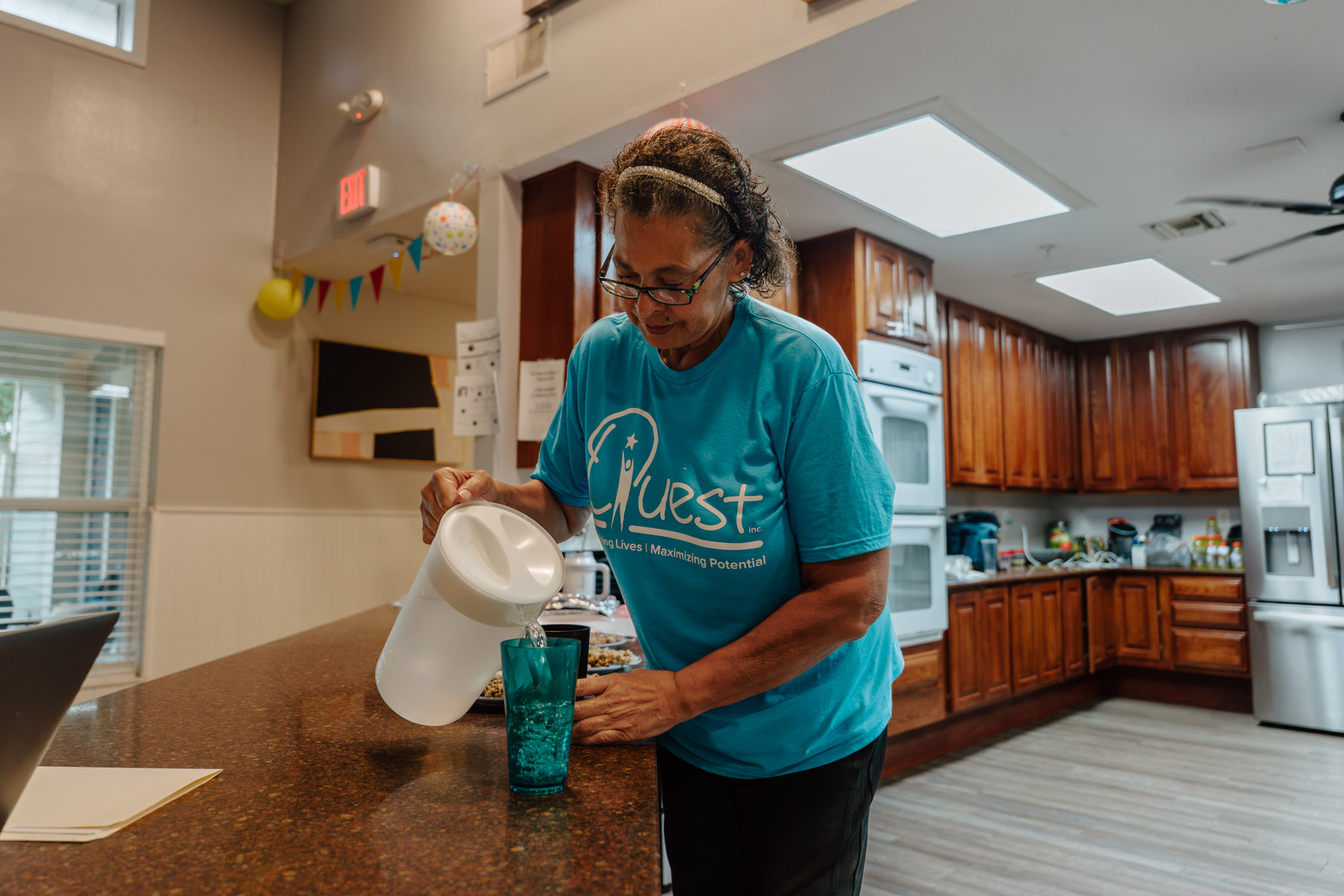 “Ms. Sarah, knowing the client’s love for music, brought in her portable speaker and played his favorite songs. Within minutes, he was smiling, singing along, and even dancing a little,” says Lashara Thomas, Quest’s senior director of group homes. “It was a beautiful reminder of how her empathy and creativity can turn someone’s entire day around.”